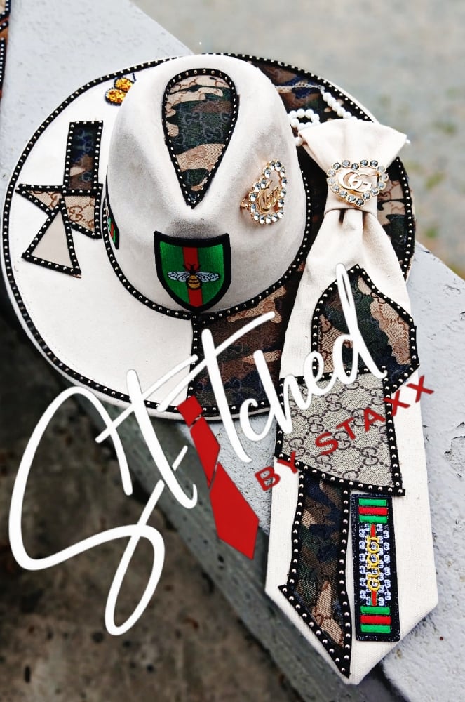 Boots Laced is a one-of-a-kind statement set that blends bold style with faith-filled meaning. Featuring a custom hat and matching necktie, this ready-to-ship design speaks to being covered, prepared, and standing strong. Inspired by the armor of God, this piece carries a powerful presence while still delivering signature Stitched by Staxx detail and flair.