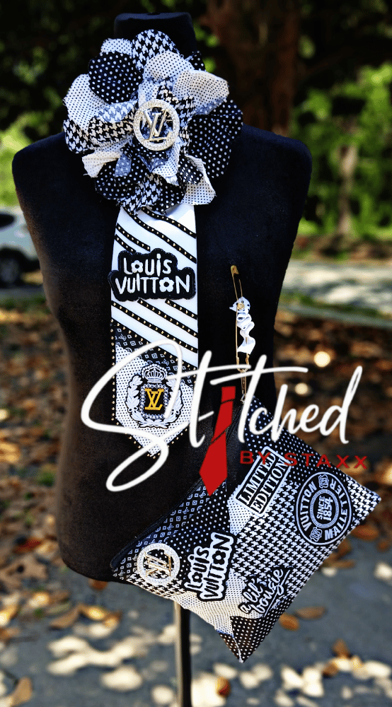 Escalation Custom Necktie is a bold statement piece made for the one who likes her style to speak before she does. Production for this necktie will begin May 8th. Please allow 3 to 4 weeks for completion, excluding weekends and holidays. Fabrics and embellishments may vary, but they will remain in the same design family and will not be identical twins. By securing your order, you are reserving your place in line for this custom creation.