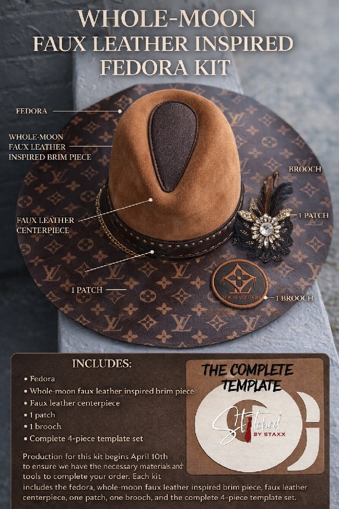 Whole-Moon Faux Leather Inspired Fedora Kit Includes: